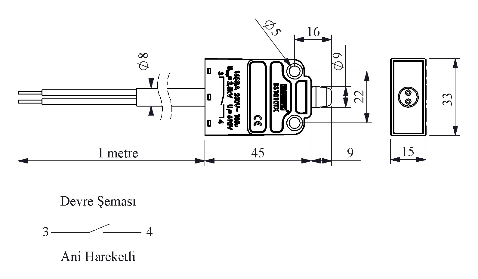 Snap Action 1NO with Etange 1m Cable BS Series Button Switch