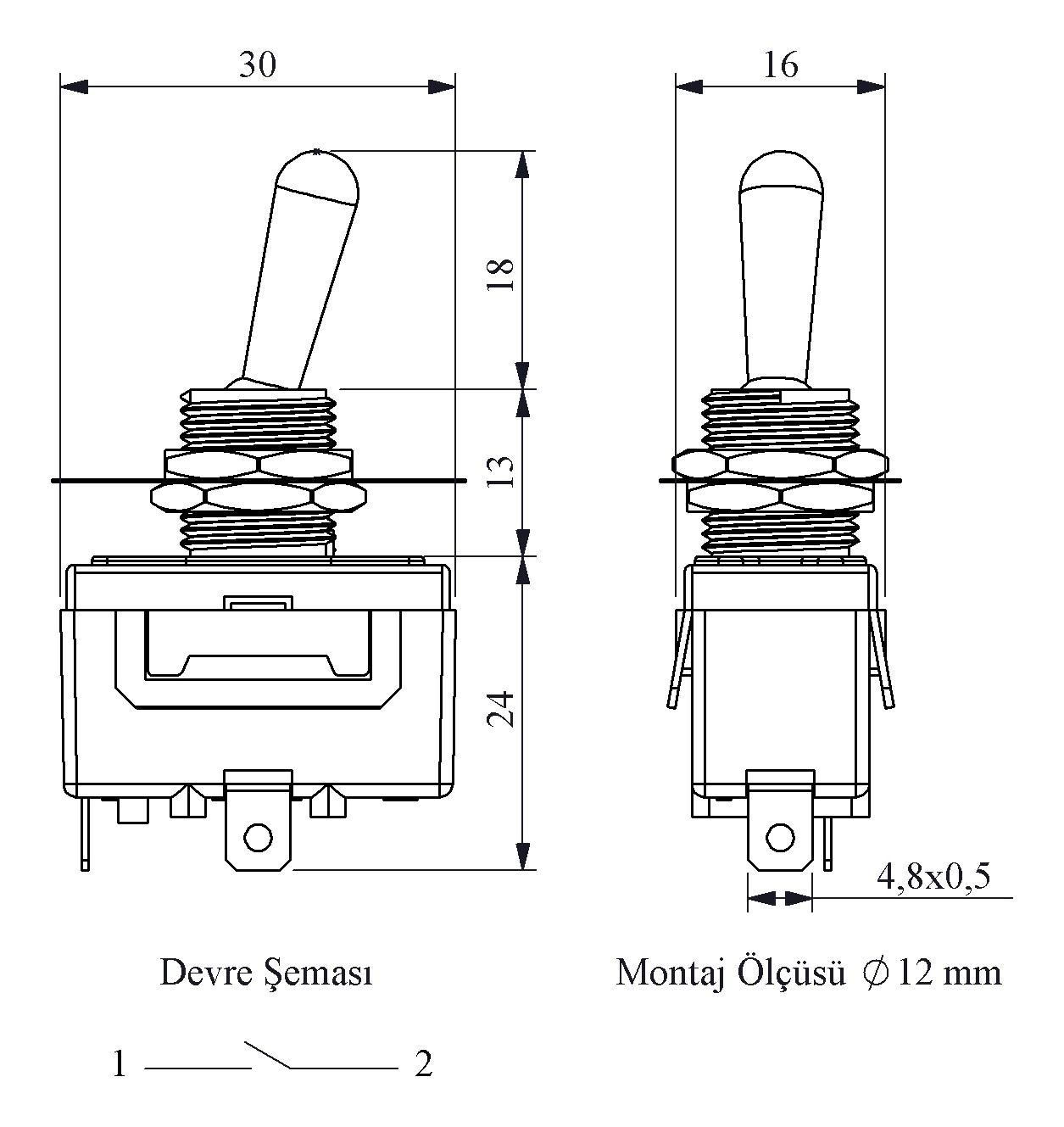 1NO with Solder Terminal (On-Off) Marked MA Series Toggle Switch