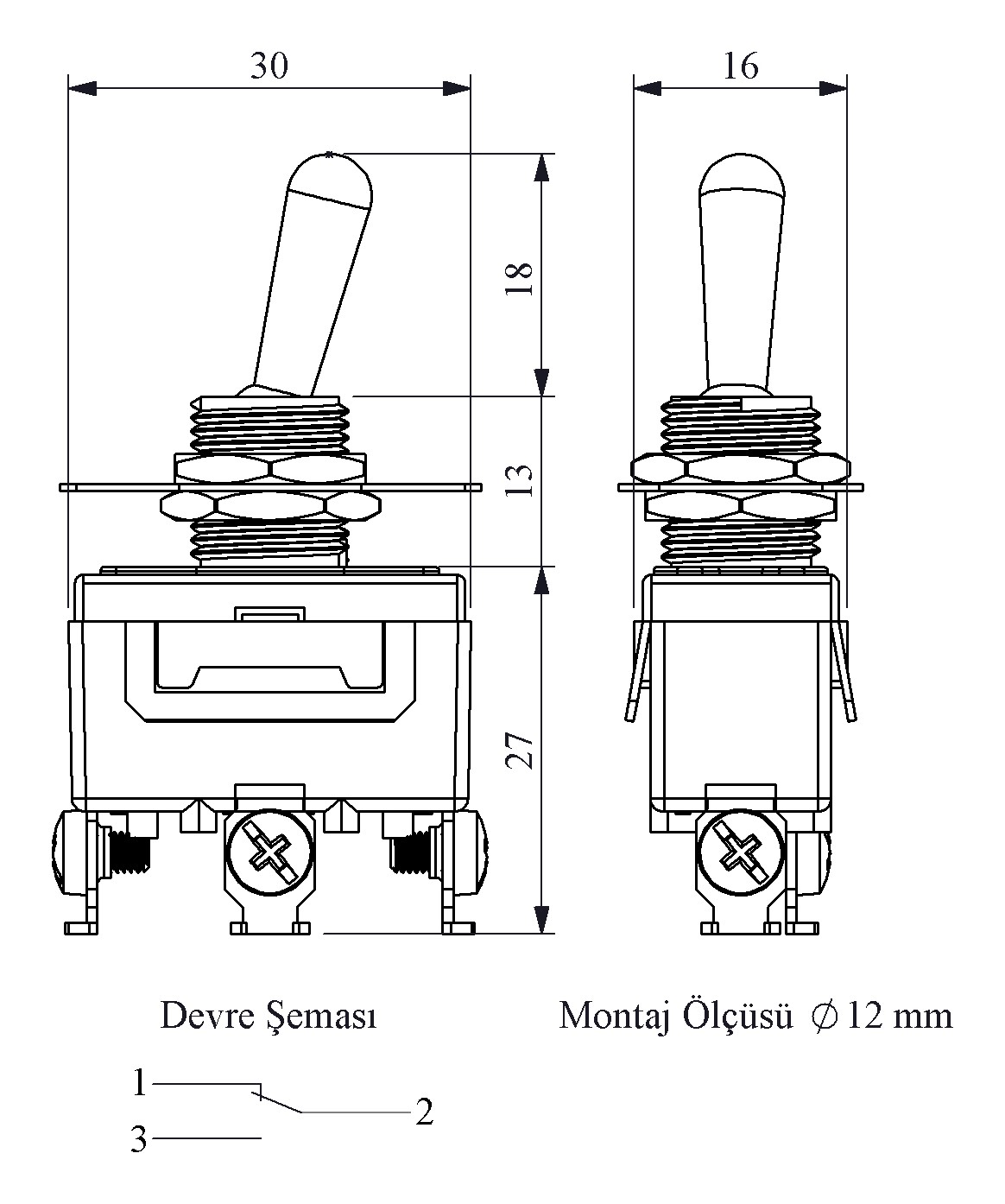 1NO+1NC with Screw (On-On) Marked MA Series Toggle Switch