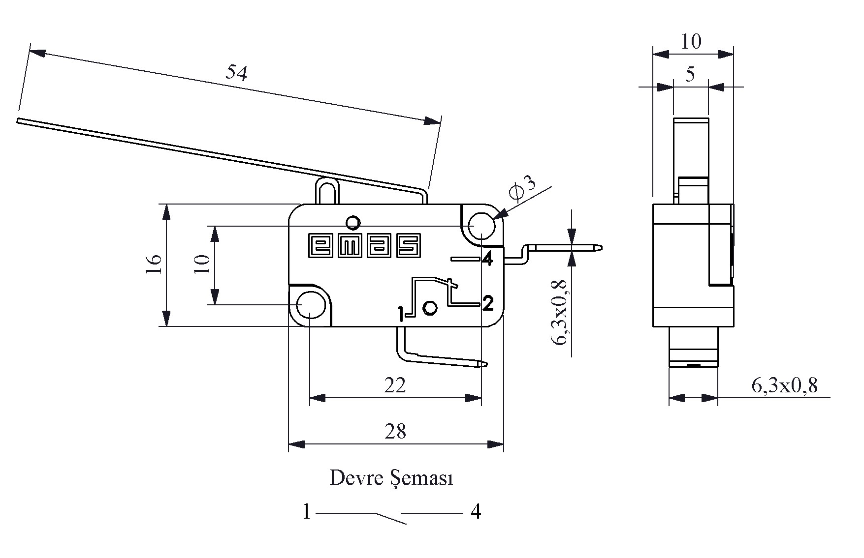 Metal Long Lever 1NO MK1 Series Micro Switch