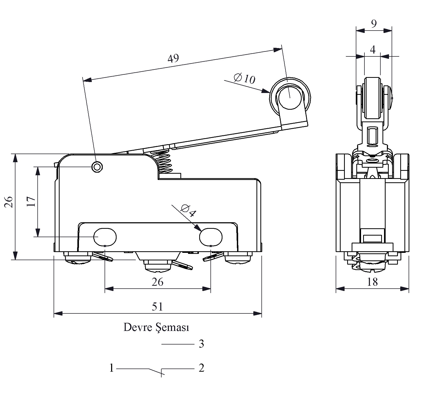 Metal Long Lever Roller 1CO MN2 Series Plastic Mini Switch
