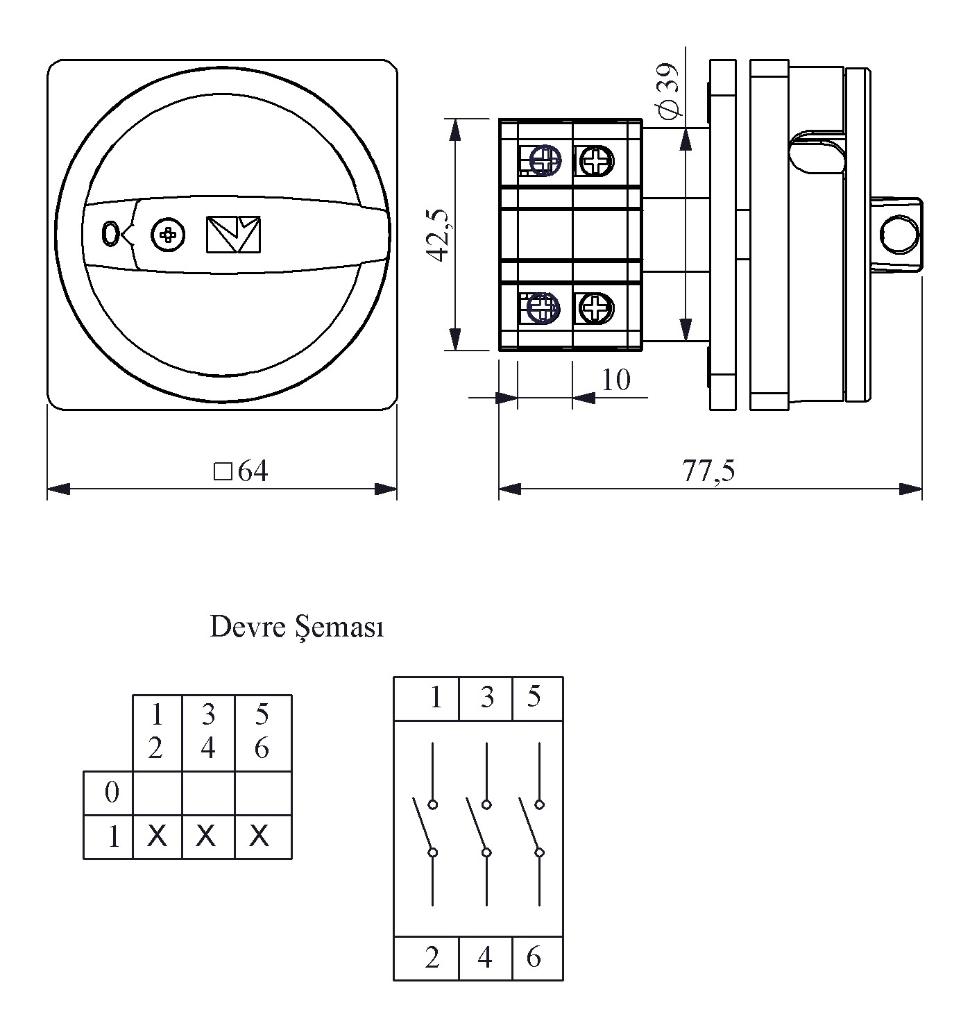 16A On-Off 3 Phase (0-1) 90° Safety 64*64 Cam Switch