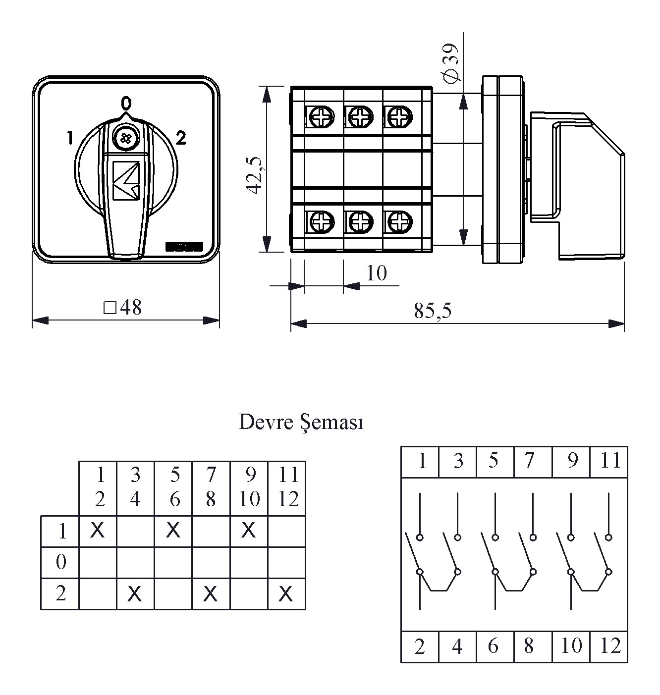 16A Changeover 3 Poles (1-0-2) 60° 48*48 Cam Switch