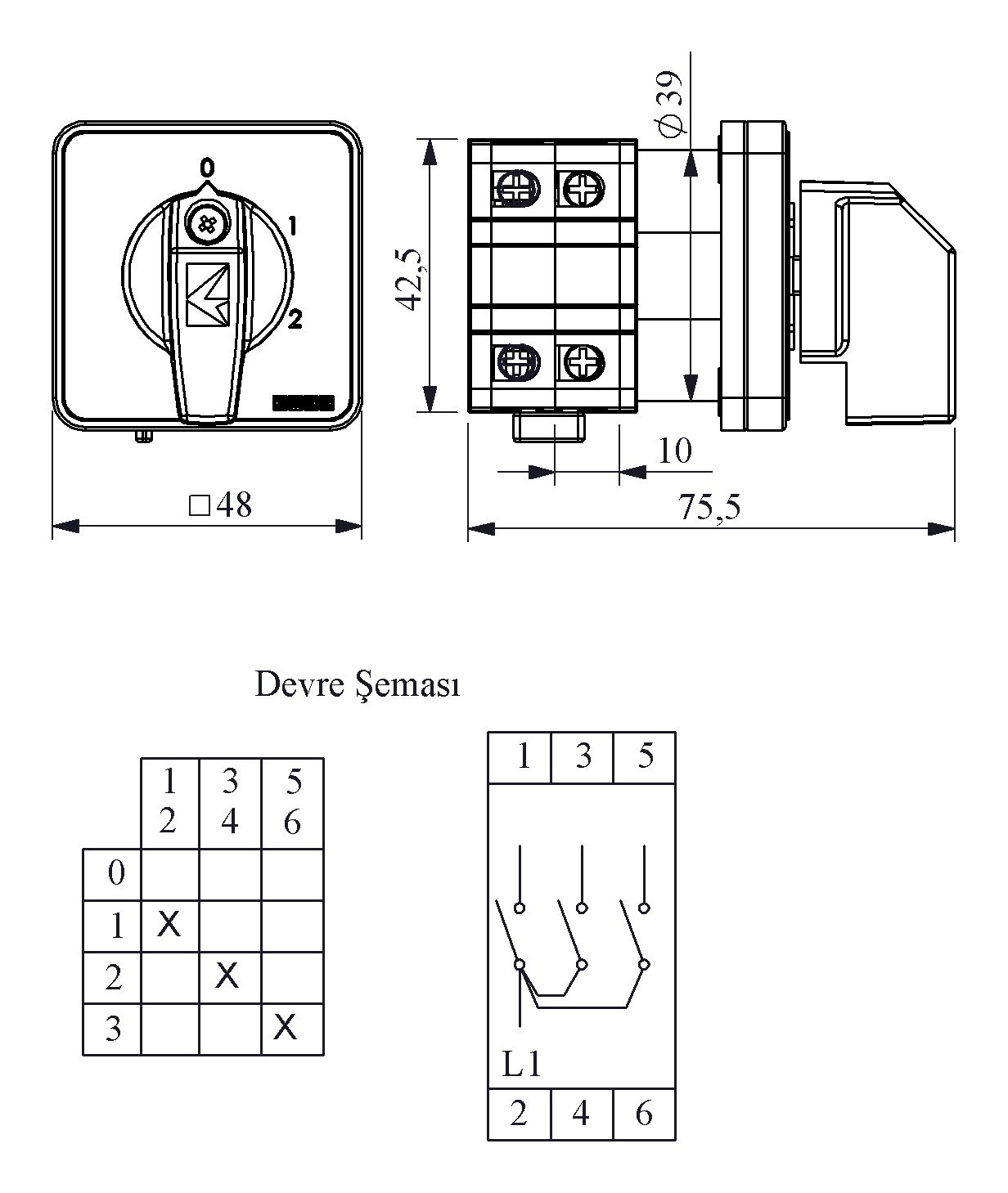 16A 3 Steps 1 Poles (0-3) 60° 48*48 Cam Switch