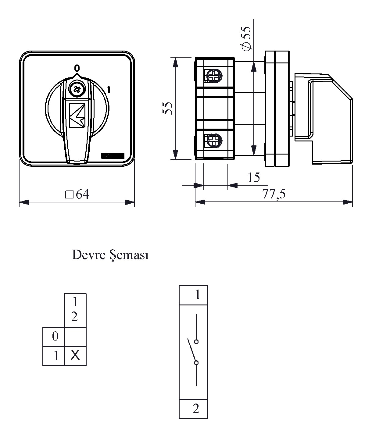 40A On-Off 1 Phase (0-1) 60° 64*64 Cam Switch
