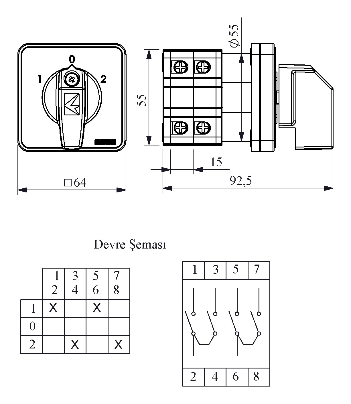 40A Changeover 2 Poles (1-0-2) 60° 64*64 Cam Switch