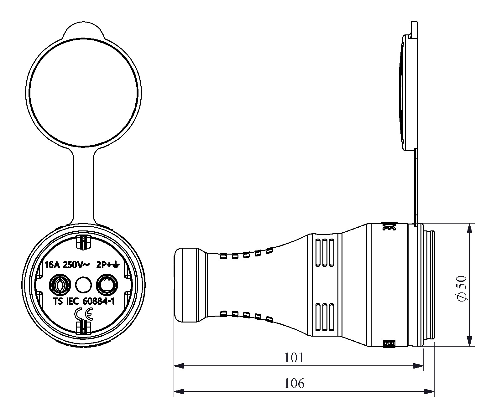 2P+E Extension Type Socket 16A Kauçuk Fiş Priz