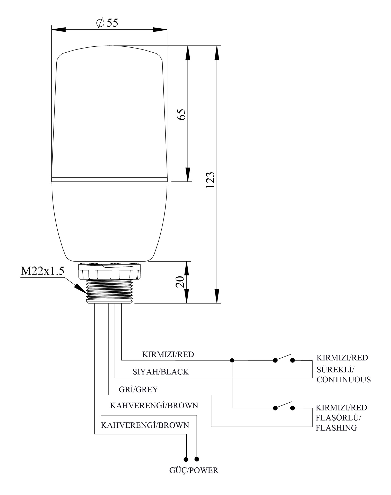IF Series Blue 24V AC/DC 1mt Cable Constant Key Control M22 Screw LED Beacon 55mm