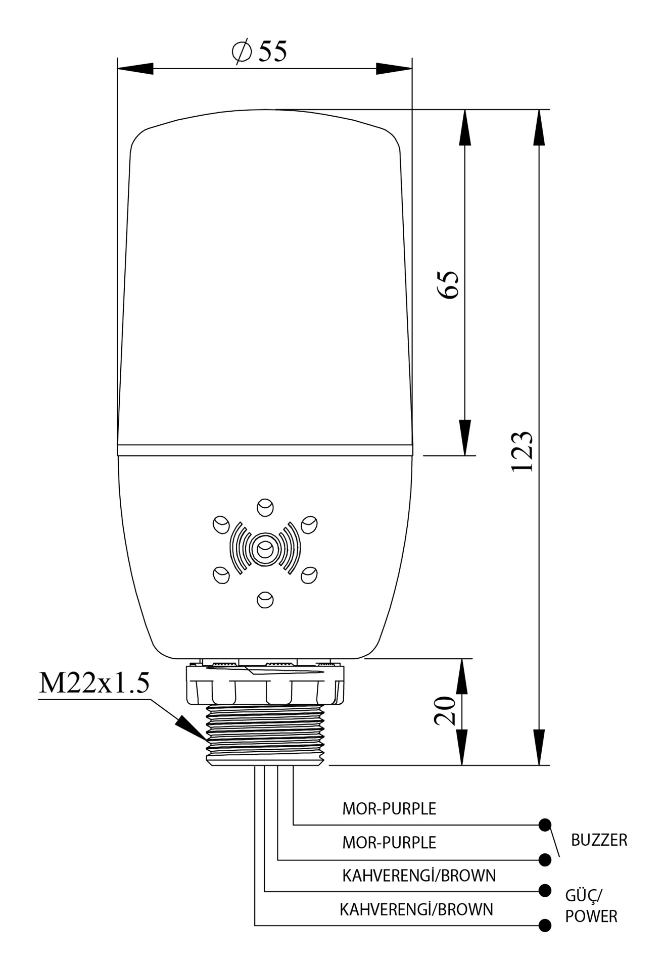 IF Series Yellow 24V AC/DC With Buzzer Rotational Key Control M22 Screw LED Beacon 55mm