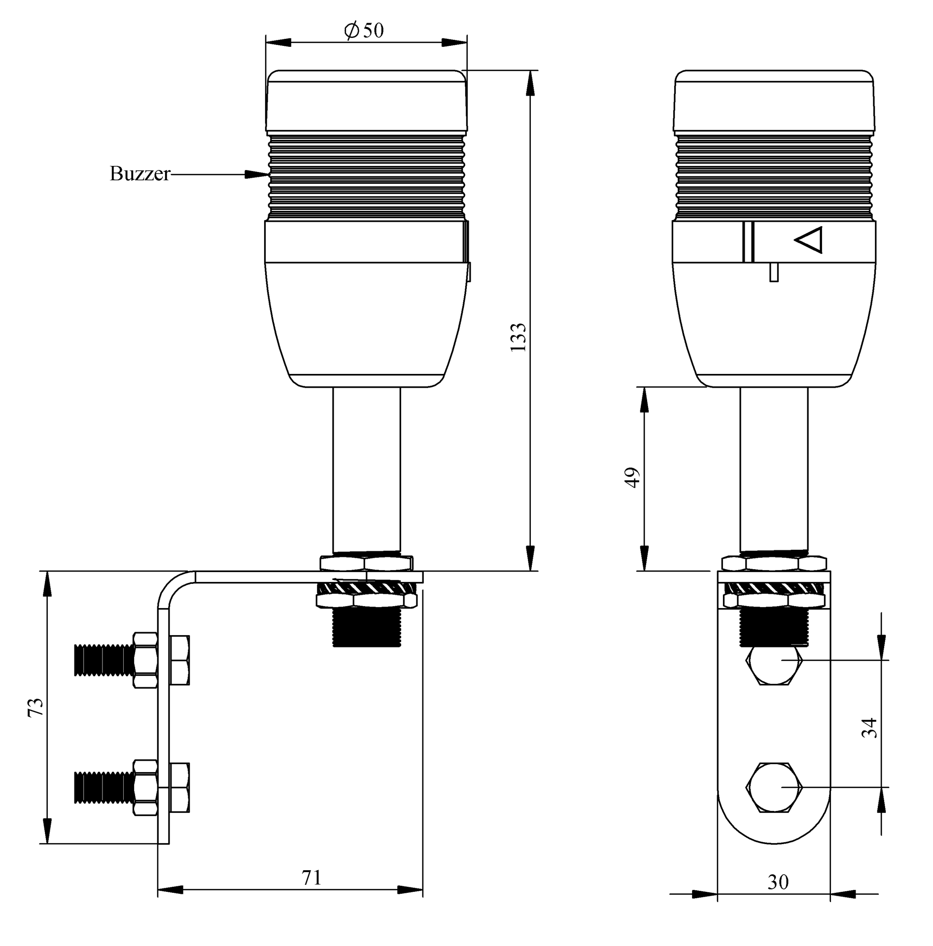 IK Series Single Level 24V AC/DC With Buzzer Wall (L) Base LED Tower 50mm