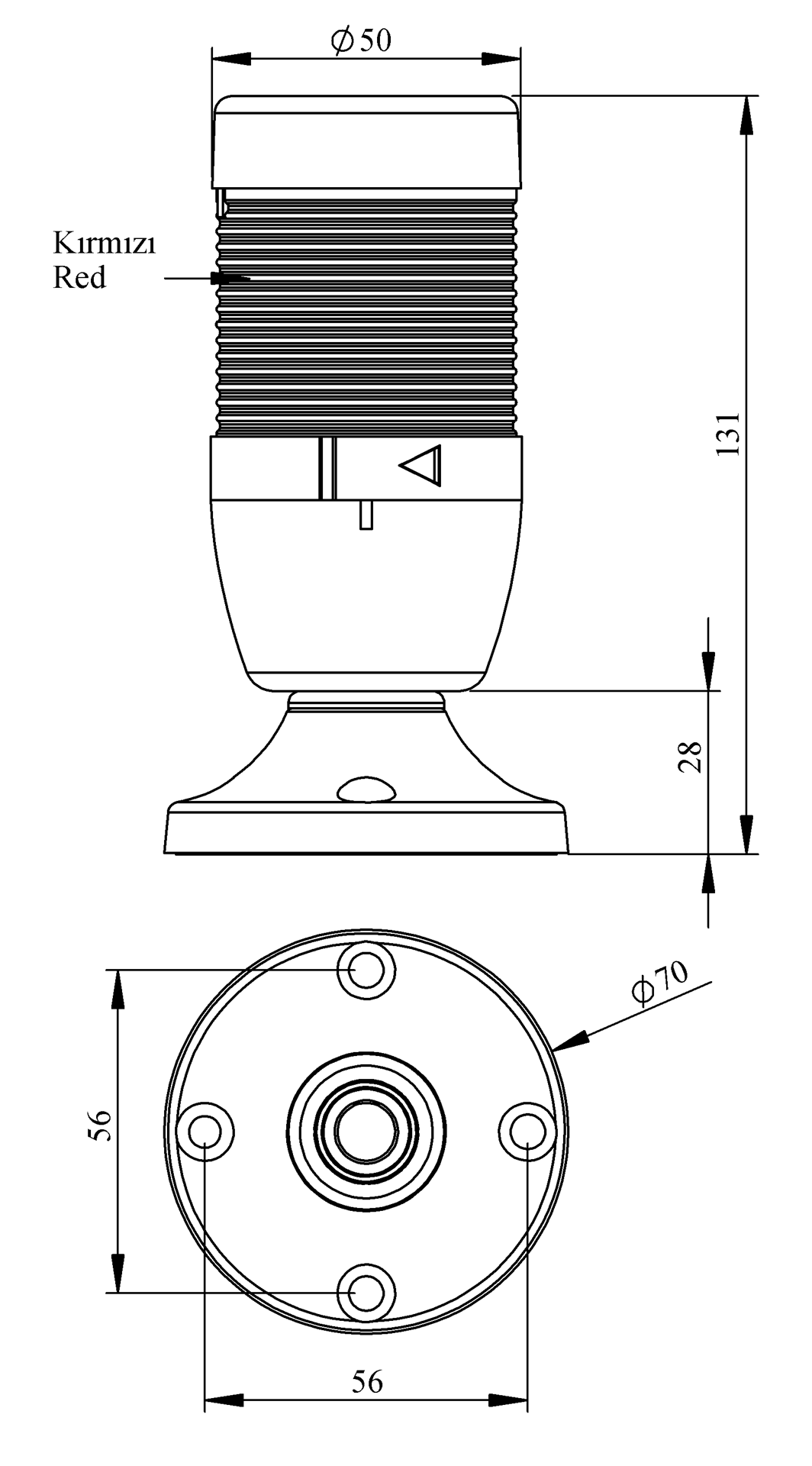 IK Series Single Level 24V AC/DC 45mm Tube Plastic Base with Etange LED Tower 50mm