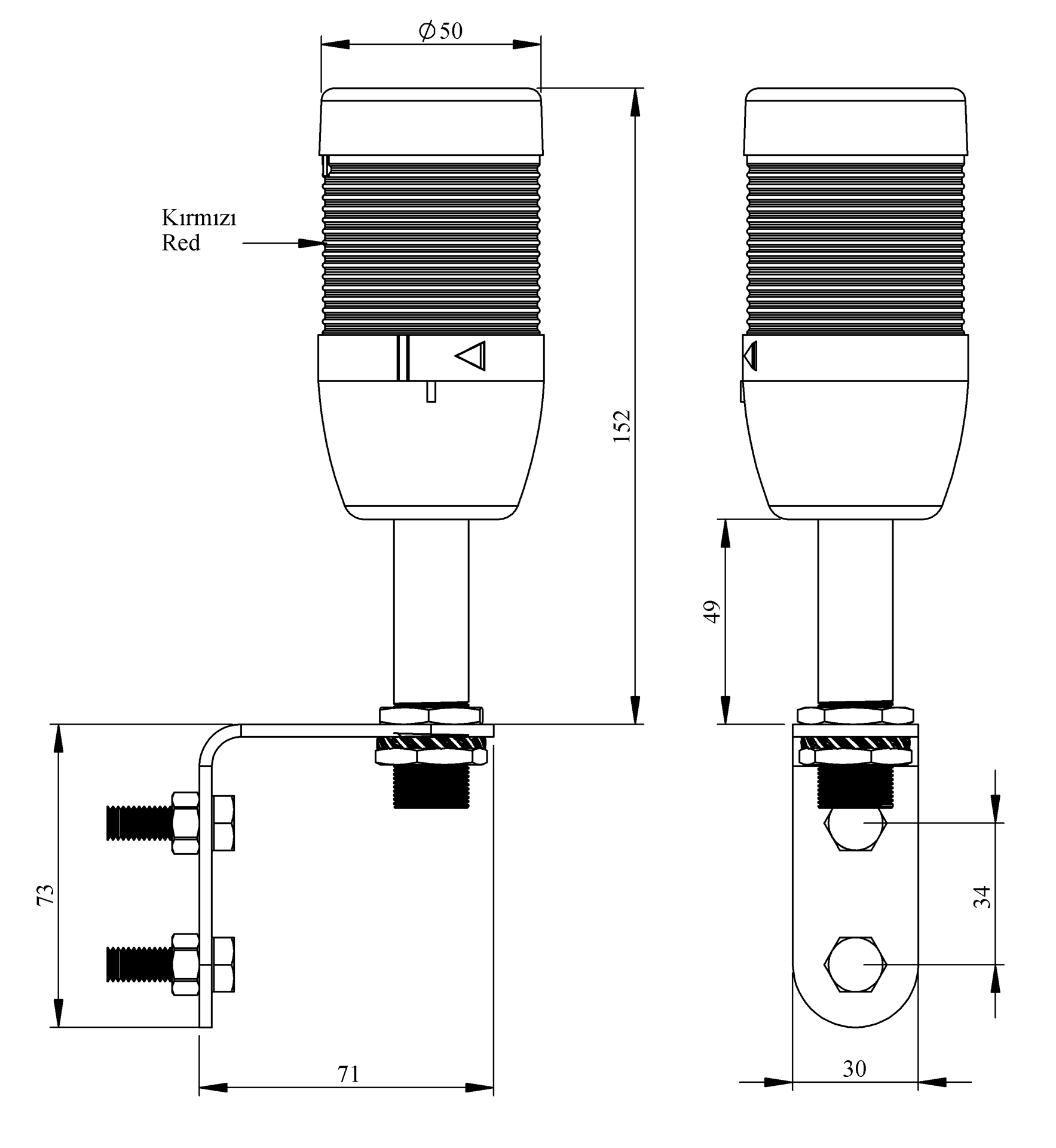 IK Series Single Level 220V AC Wall (L) Base LED Tower 50mm