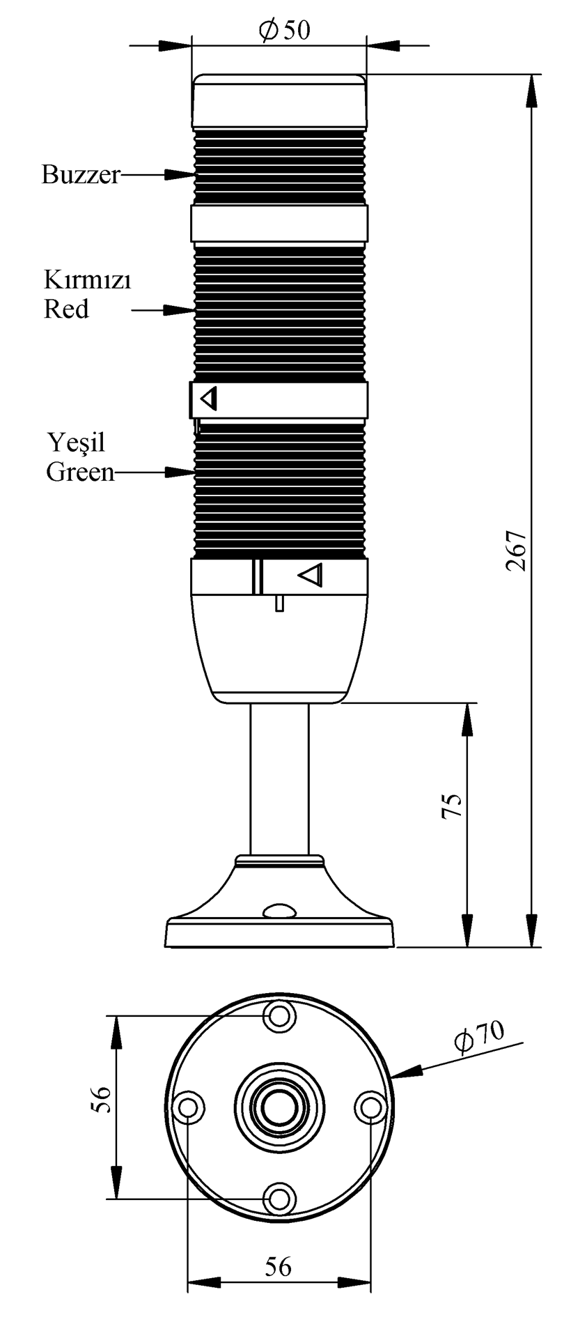 IK Series Three Level 220V AC With Buzzer 100mm Tube Plastic Base LED Tower 50mm