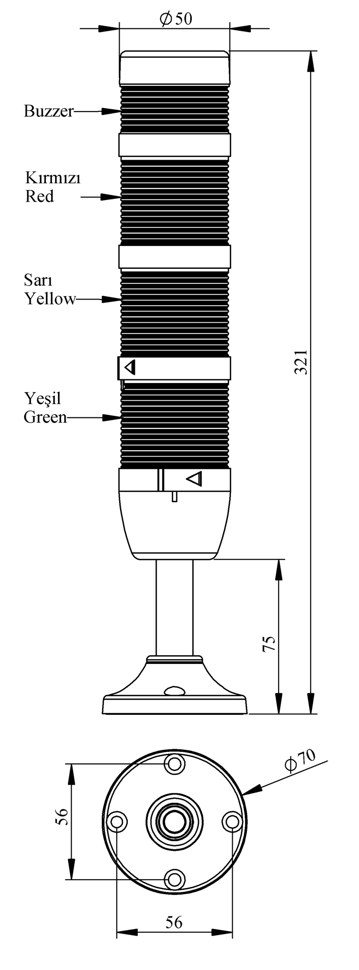IK Series Four Level 220V AC With Buzzer 100mm Tube Plastic Base LED Tower 50mm