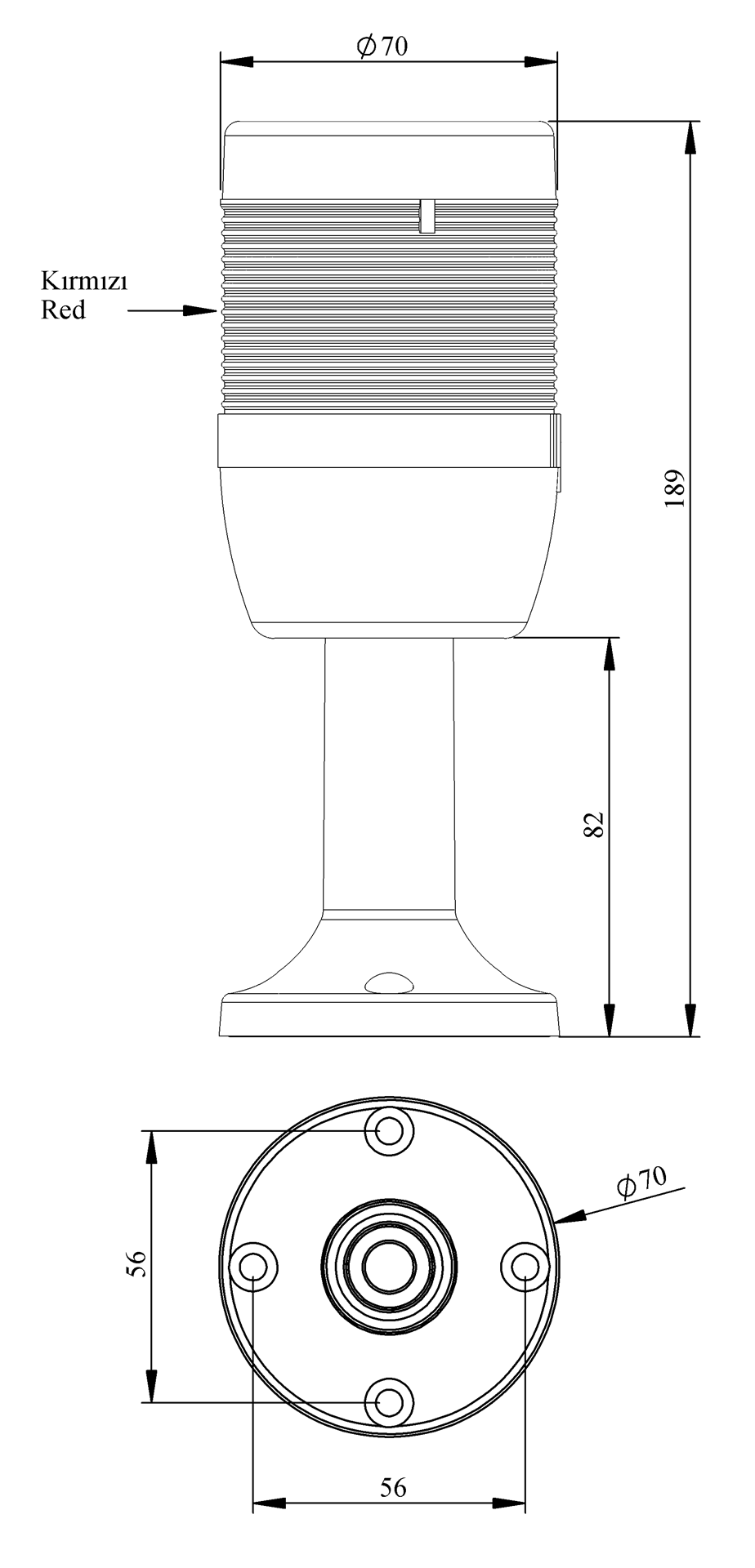 IK Series Single Level 220V AC Flasher 110mm Plastic Tube and Base LED Tower 70mm
