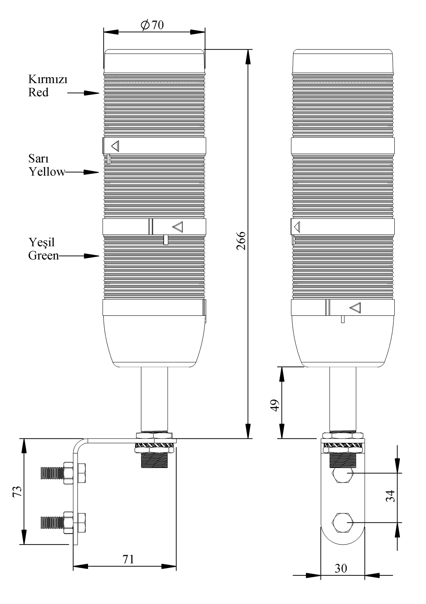 IK Series Three Level 24V AC/DC Wall (L) Base LED Tower 70mm