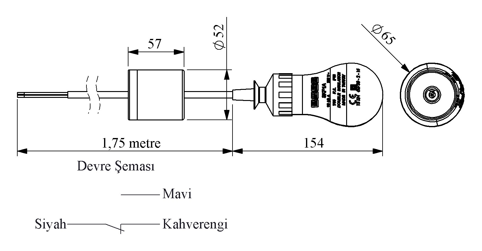 SKF1A Series 1 Phase 1,75m PVC Bulb With Standard Weight Level Control Float Switch