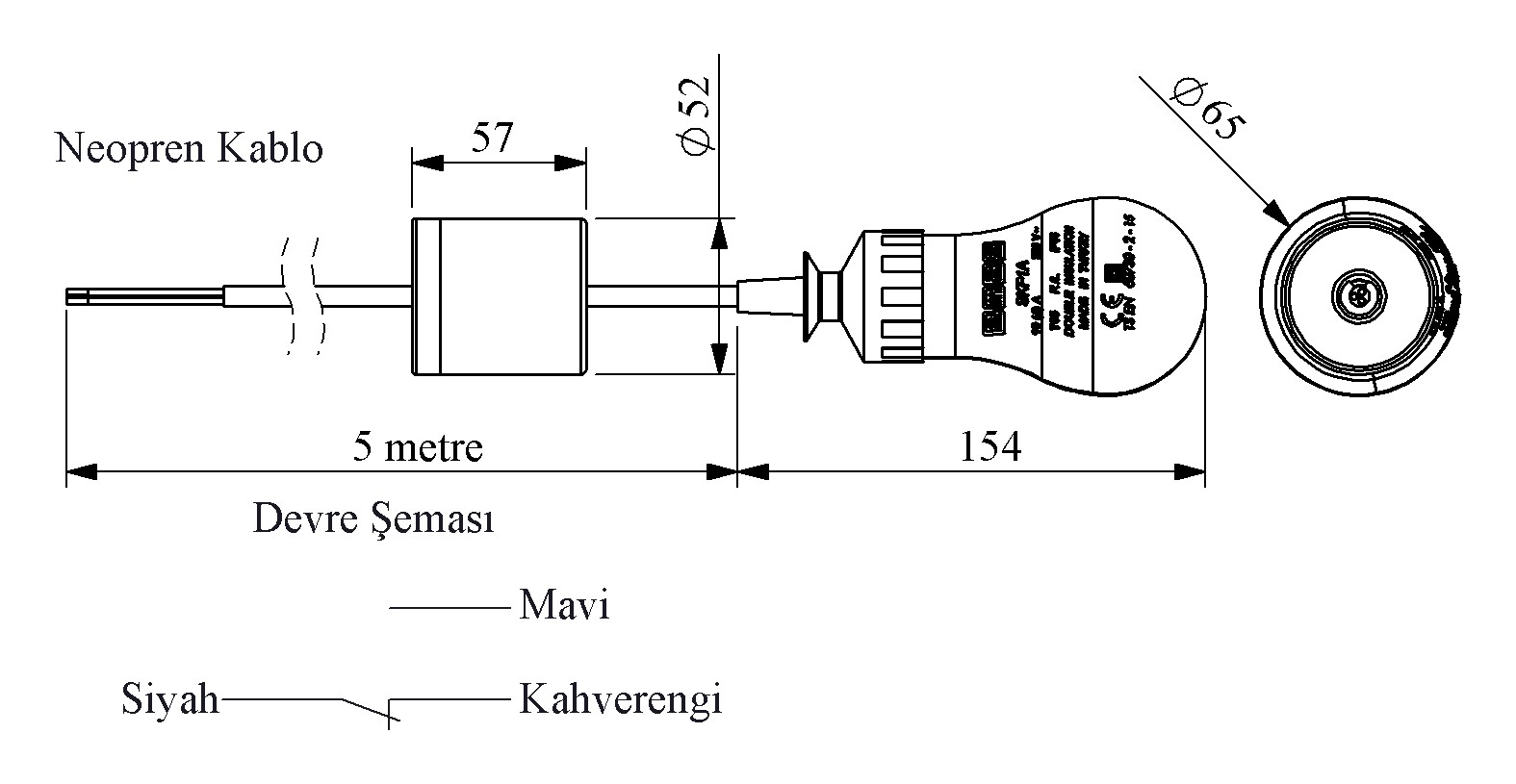 SKF1A Series 1 Phase 5m Neoprene Bulb With Standard Weight Level Control Float Switch