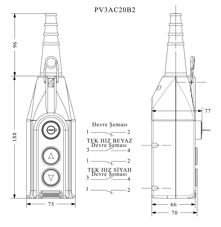 PV Series 3 Hole Single Speed 1NC Key Selector Crane Pendant Station
