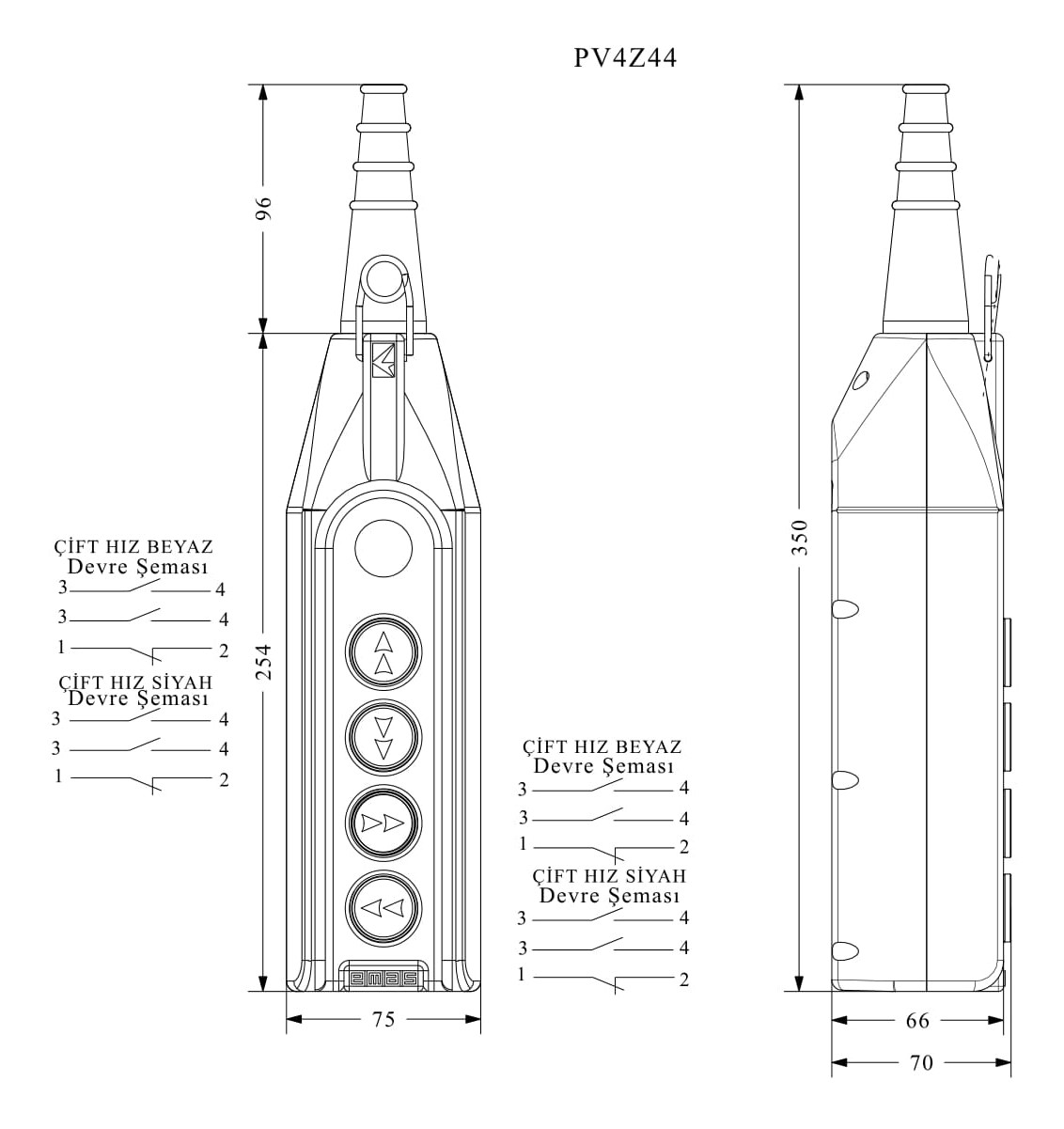 PV Series 4 Hole Double Speed 1.Hole Closed Crane Pendant Station