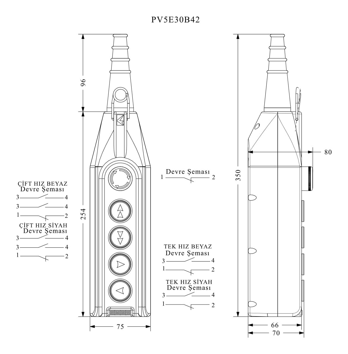 PV Series 5 Hole Single-Double Speed 1NC Emergency Stop Crane Pendant Station