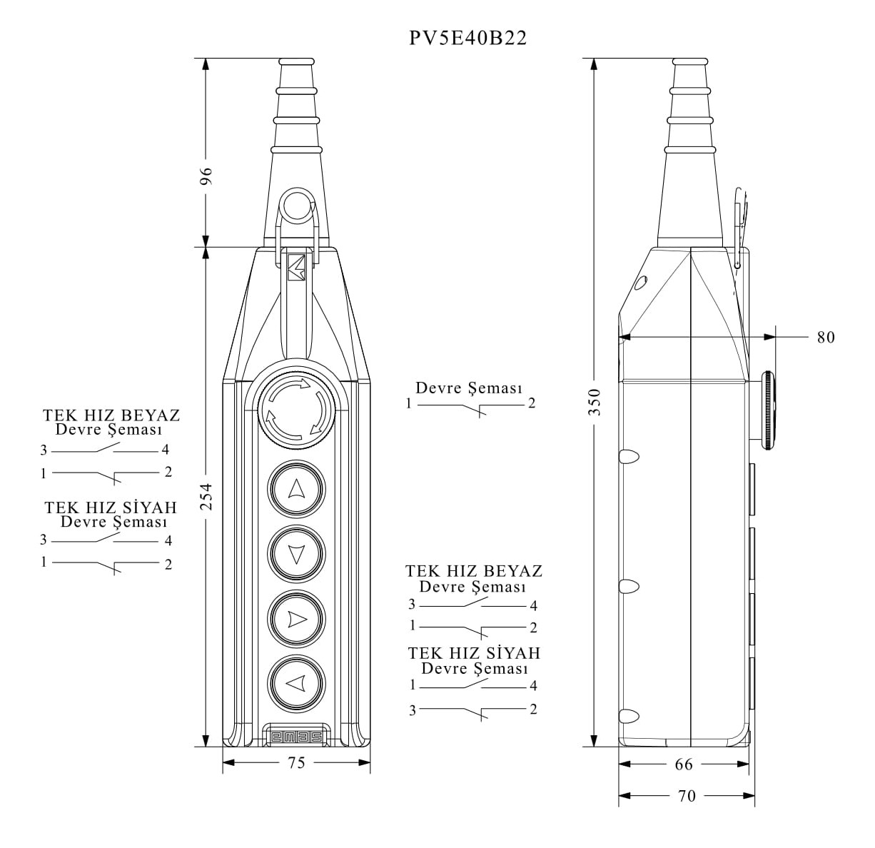PV Series 5 Hole Single Speed 1NC Emergency Stop Crane Pendant Station