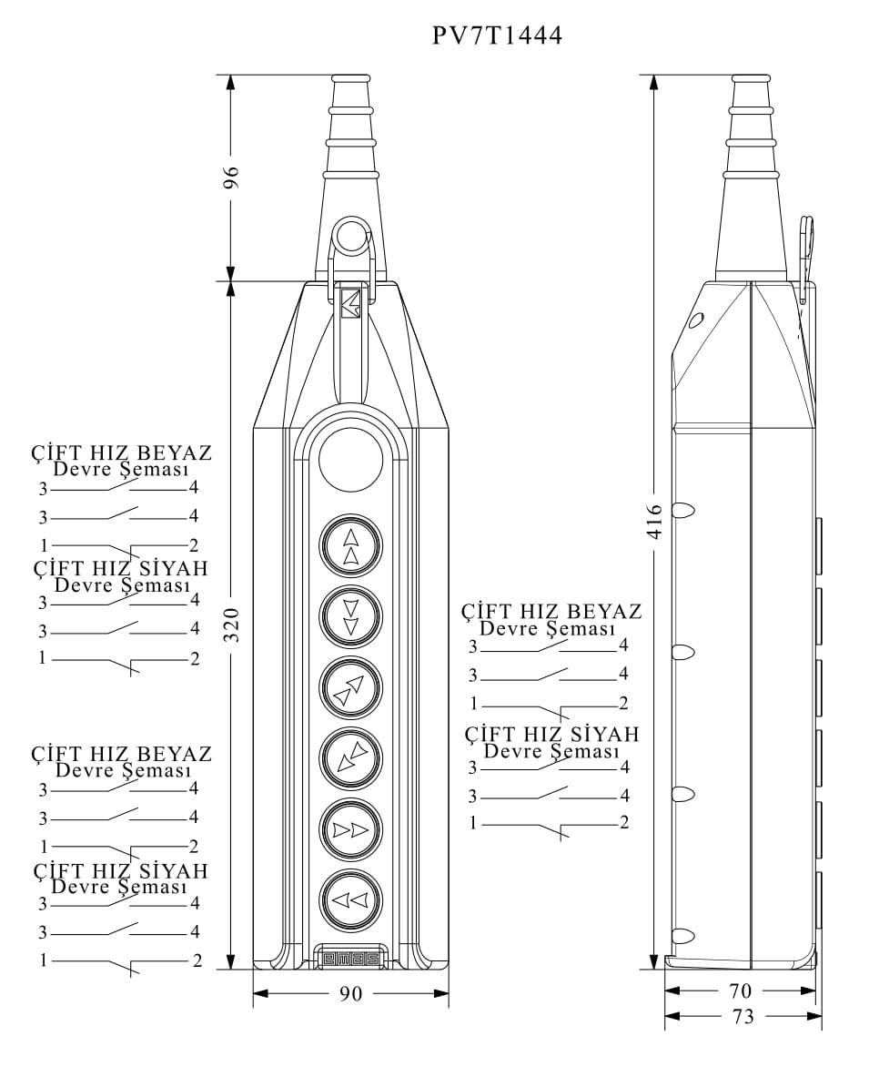 PV Series 7 Hole Double Speed Blind Cap Crane Pendant Station