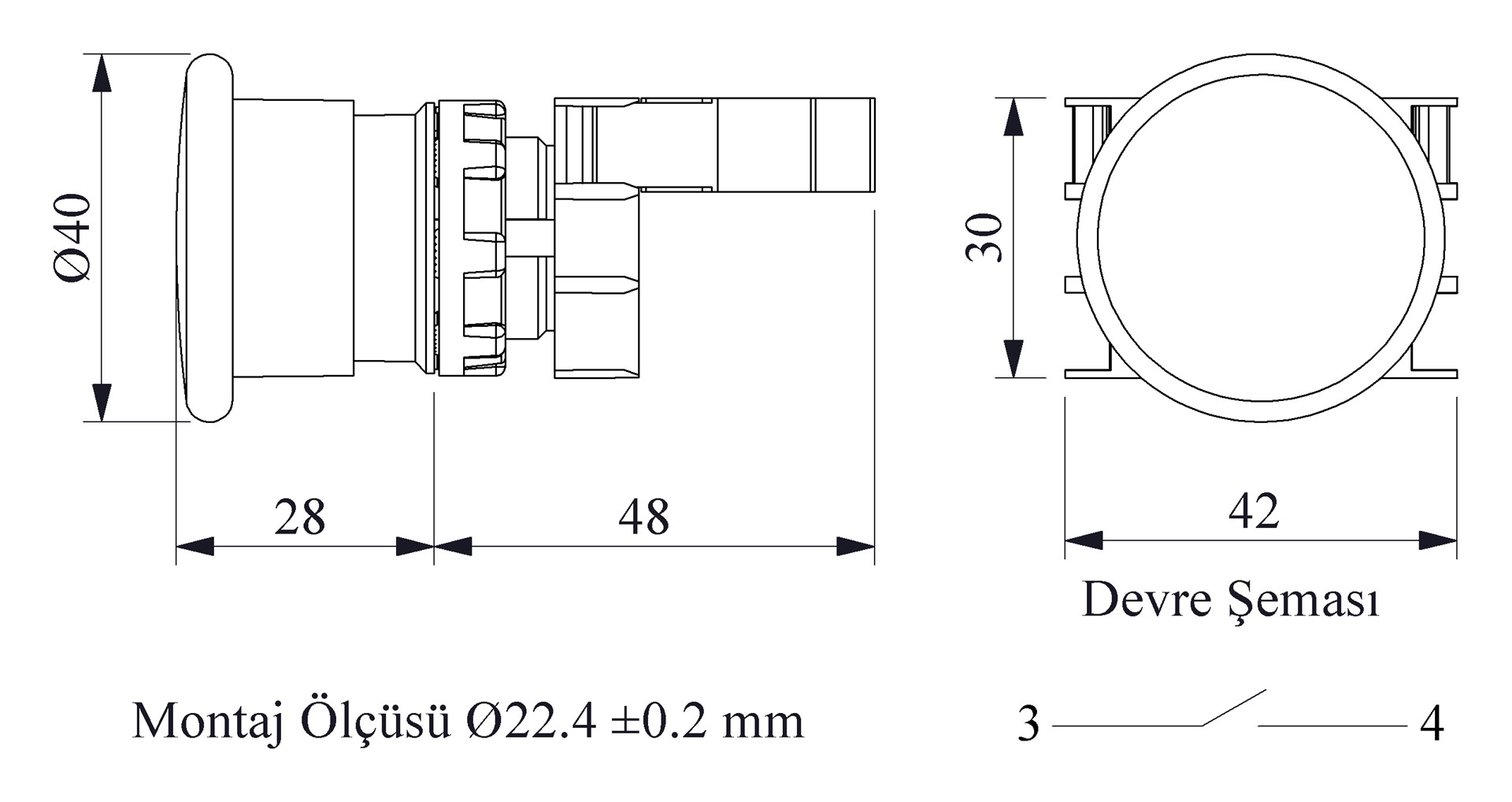 B Serisi Plastik 1NO Yaylı 40 mm Mantar Kırmızı 22 mm Buton