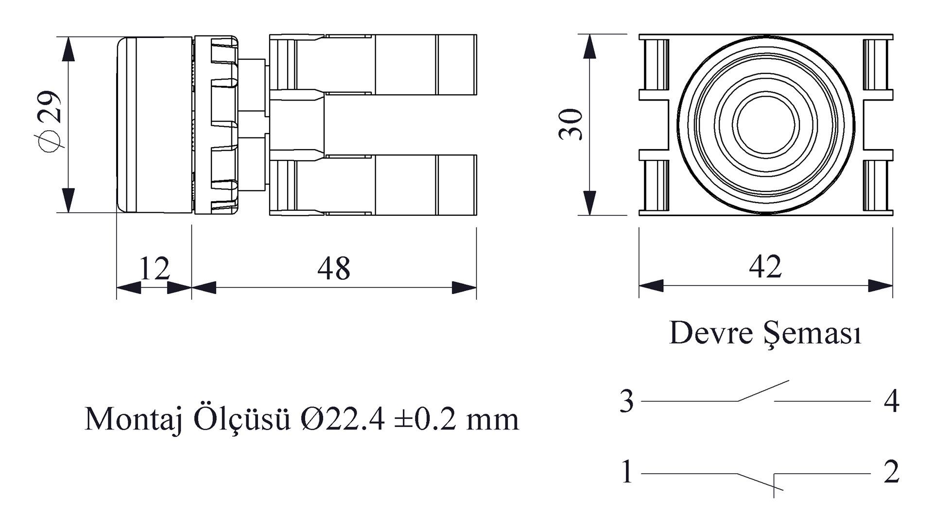 B Serisi Plastik 1NO+1NC Yaylı Kalıcı Yeşil 22 mm Buton