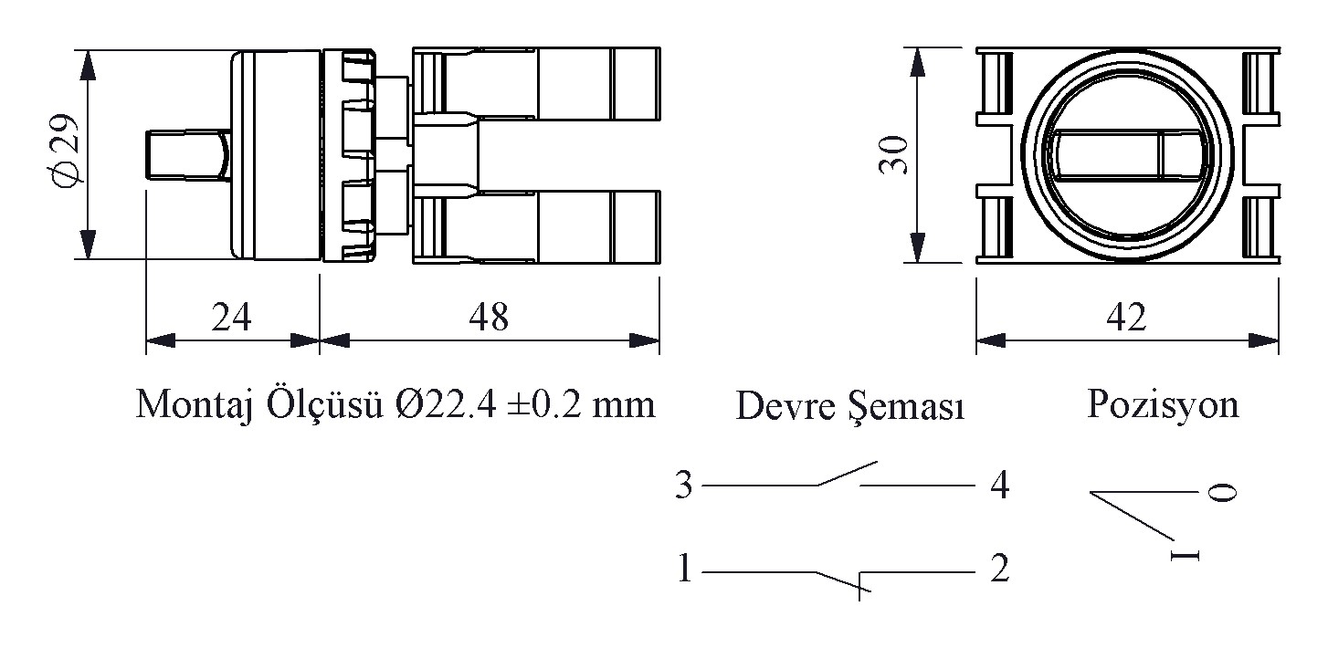 B Serisi Plastik 1NO+1NC (0-I) 60° Seçici Kalıcı Işıklı Yeşil 22 mm Buton
