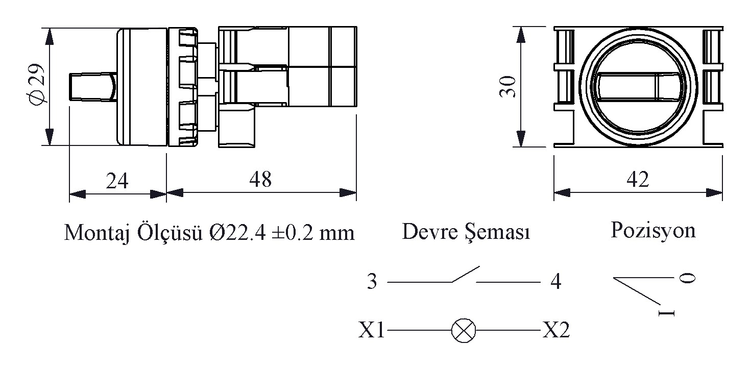 B Serisi Plastik Ba9S Duylu 1NO (0-I) 60° Seçici Kalıcı Işıklı Sarı 22 mm Buton