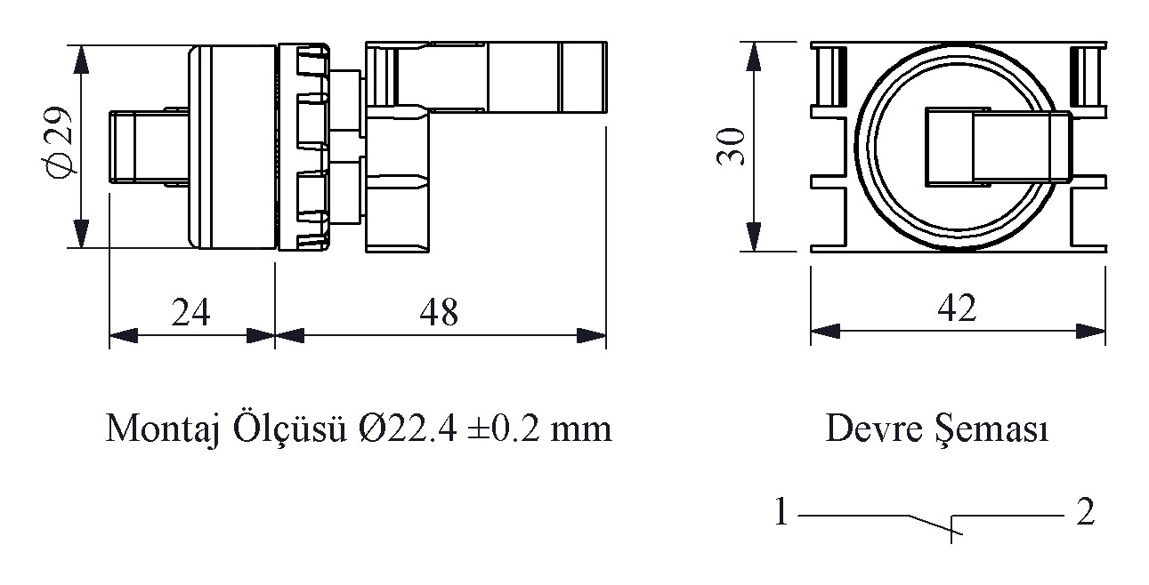 B Serisi Plastik 1NC Mandallı Kalıcı Beyaz (0-I) Baskılı 22 mm Buton