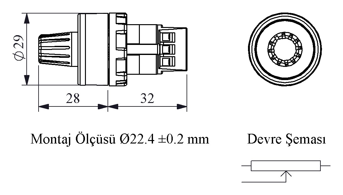 B Serisi Plastik 1 kΩ 22 mm Potansiyometre
