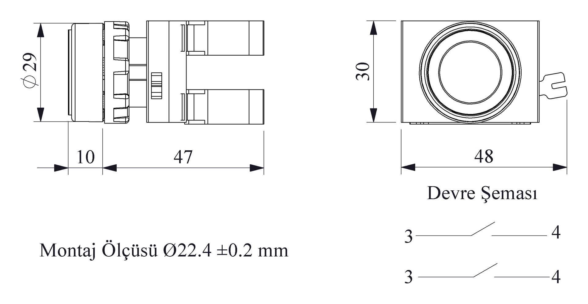 CM Serisi Metal 2NO Yaylı Düz Mavi 22 mm Buton