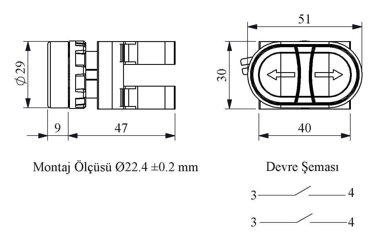 CM Serisi Metal 2NO Çiftli Düz Yeşil-Yeşil (Ok) İşareti Baskılı 22 mm Buton
