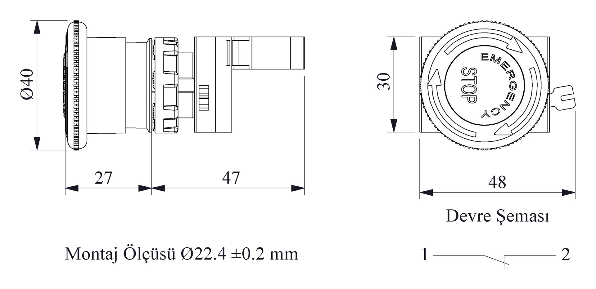 CM Serisi Metal 1NC Acil Stop 40 mm Çevirmeli Etiketli Kırmızı 22 mm Buton