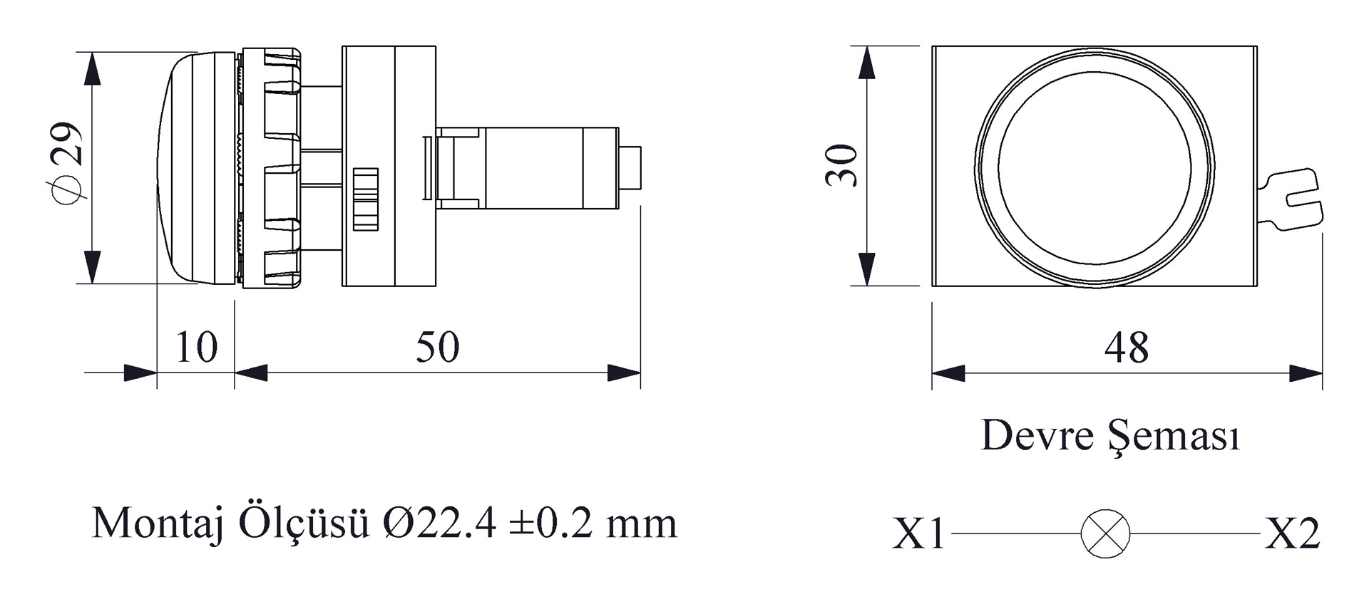 CP Serisi Plastik LED'li 230V DC Sarı 22 mm Sinyal