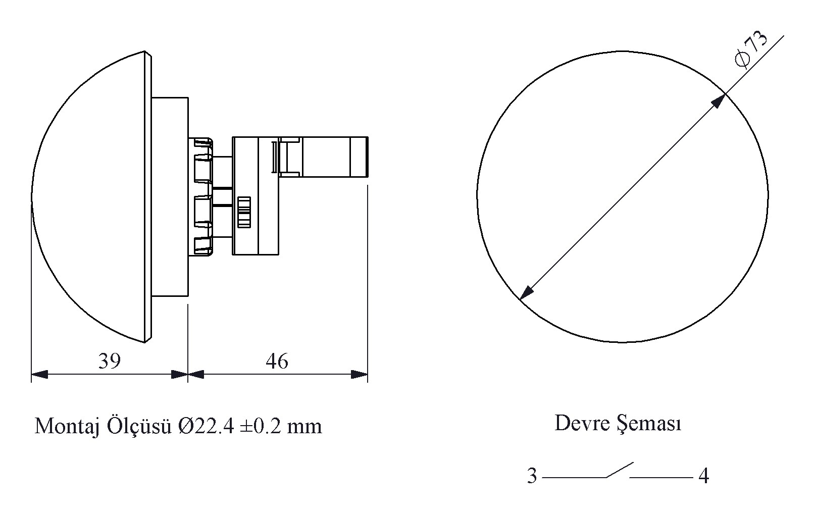 CP Serisi Plastik 1NO Yaylı 72 mm Mantar Siyah 22 mm Buton