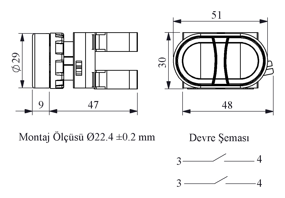 CP Serisi Plastik 2NO Çiftli Düz Siyah-Beyaz 22 mm Buton