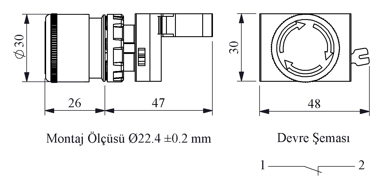 CP Serisi Plastik 1NC Acil Stop 30 mm Çevirmeli Kısa Kırmızı 22 mm Buton
