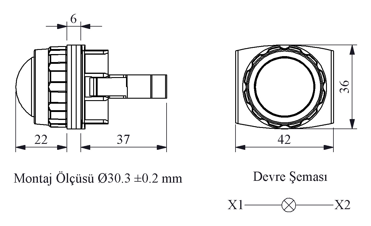 H Serisi Plastik Ba9S Duylu Yeşil 30 mm Sinyal