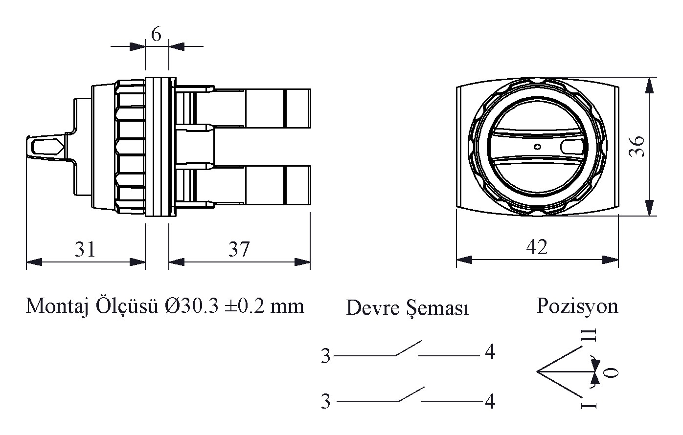 H Serisi Plastik 2NO (II-0-I) 60° Seçici Çift Dönüşlü 30 mm Buton