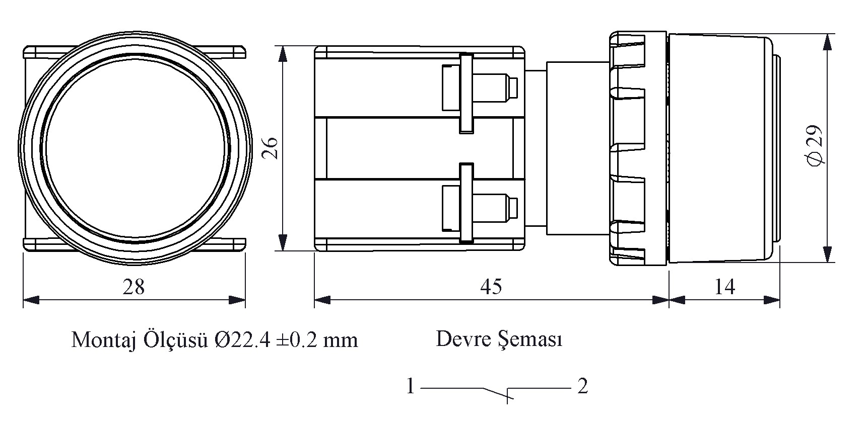 KB Serisi Plastik 1NC Yaylı Düz Kırmızı 22 mm Buton