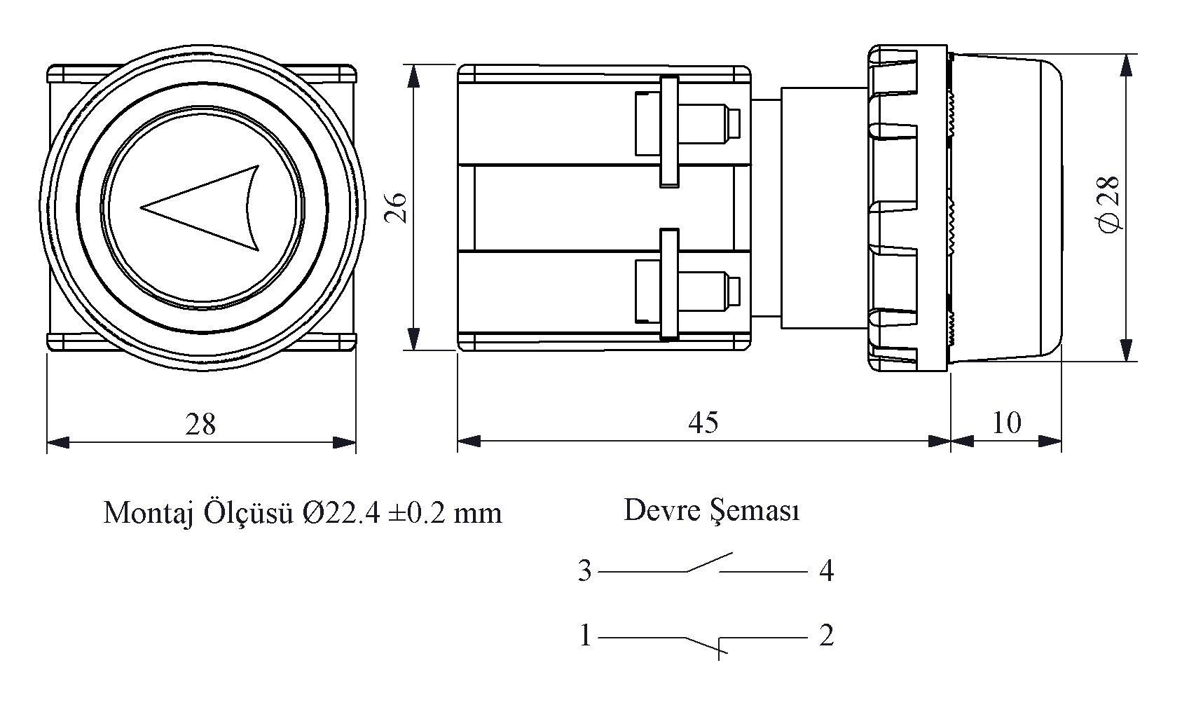 KB Serisi Plastik 1NO+1NC Yaylı Etanj Mavi (Ok) İşareti Baskılı 22 mm Buton