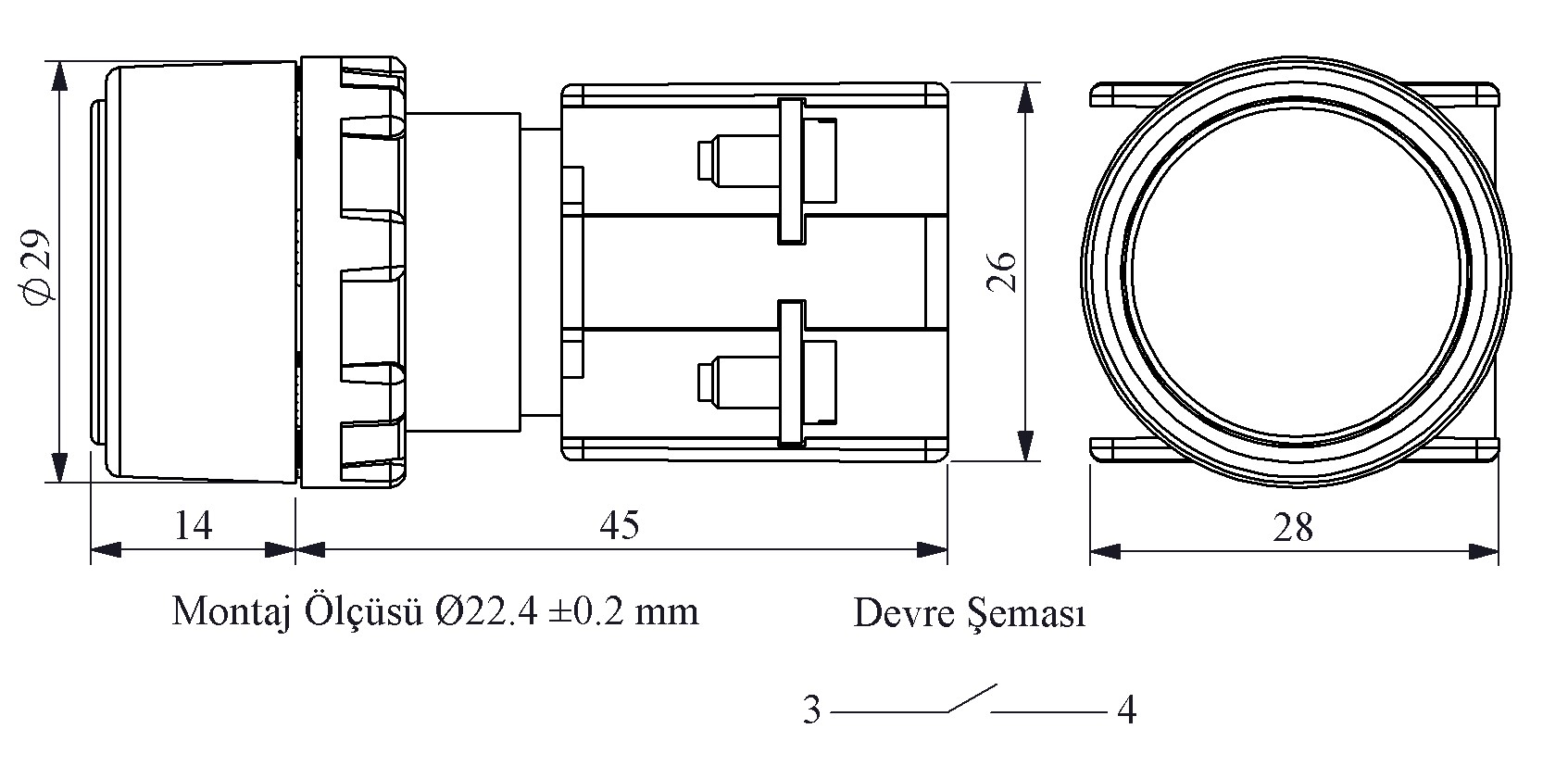 KB Serisi Plastik 1NO Yaylı Düz Yeşil 22 mm Buton