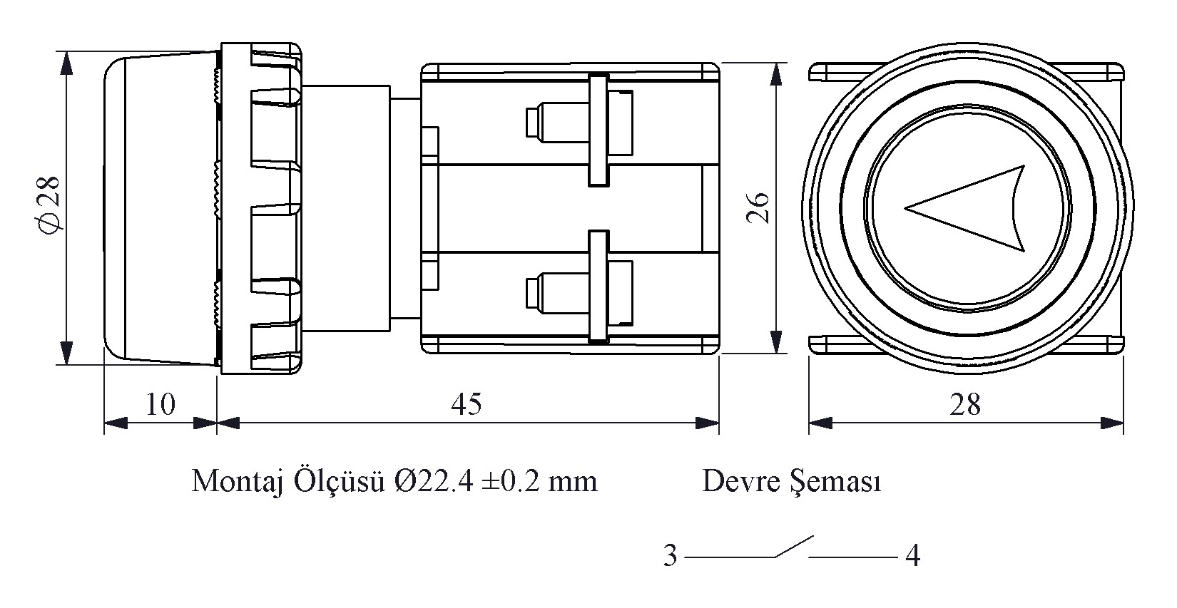 KB Serisi Plastik 1NO Yaylı Etanj Beyaz (Ok) İşareti Baskılı 22 mm Buton