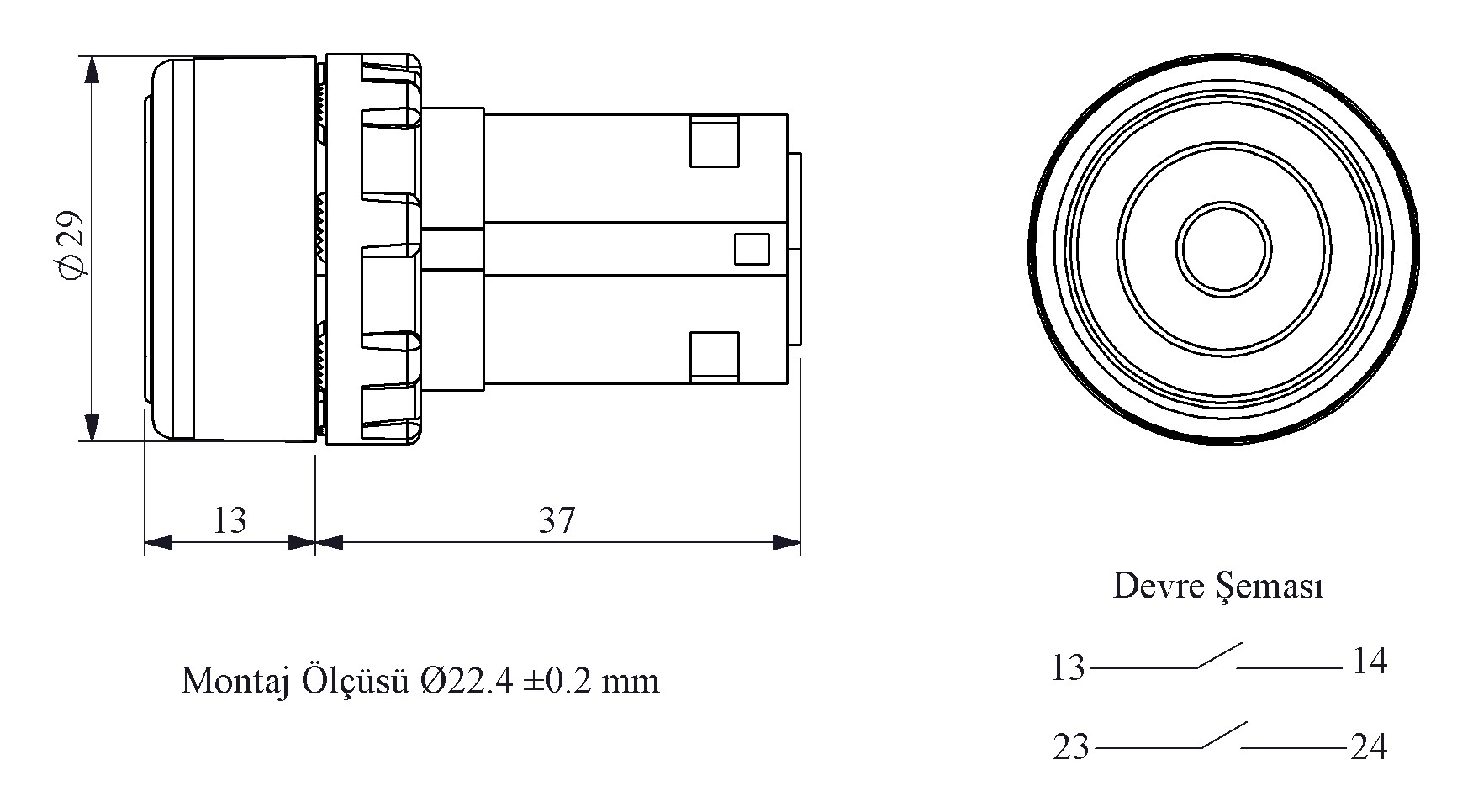 MB Serisi Plastik 2NO Yaylı Kalıcı Yeşil 22 mm Buton