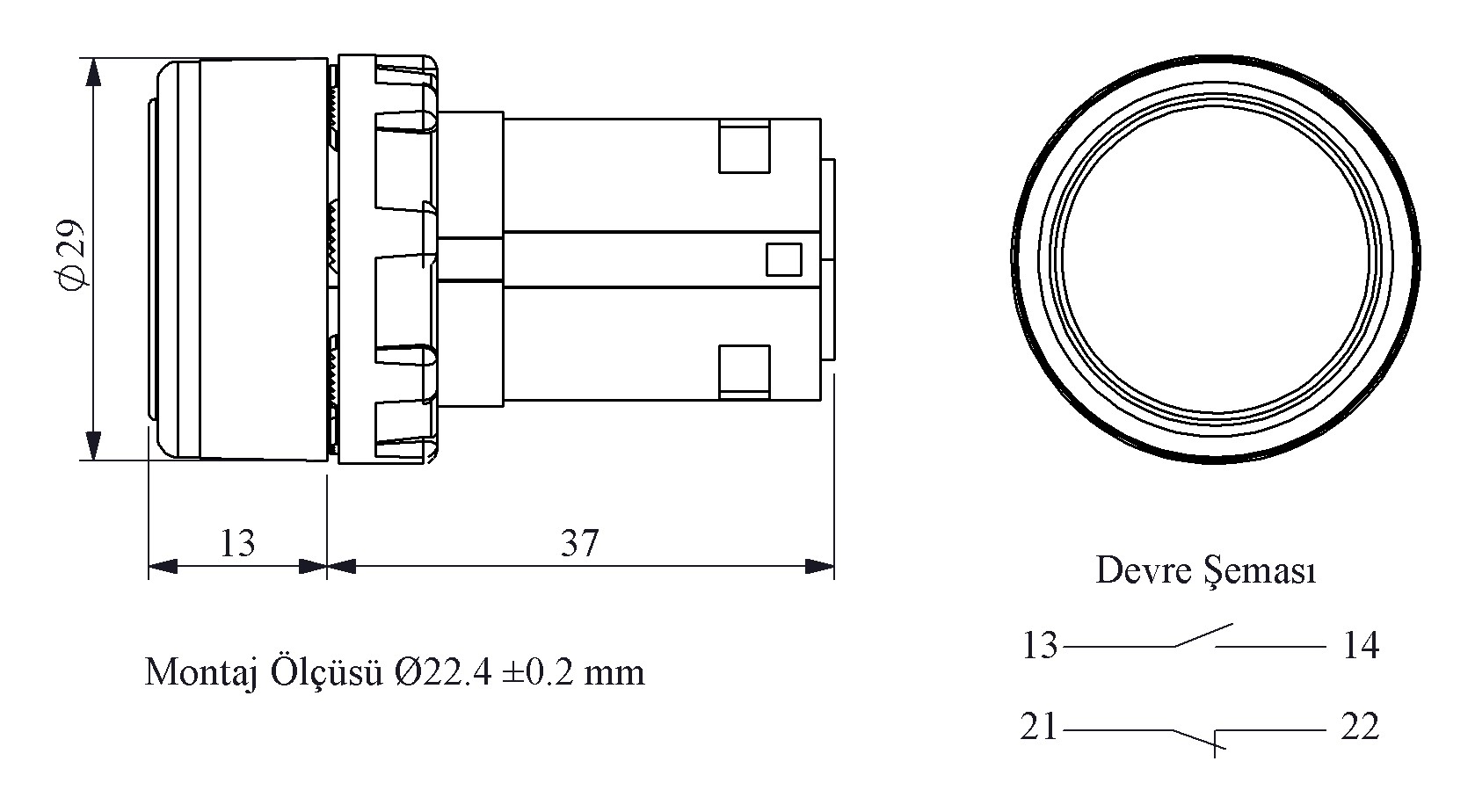 MB Serisi Plastik 1NO+1NC Yaylı Düz Mavi 22 mm Buton