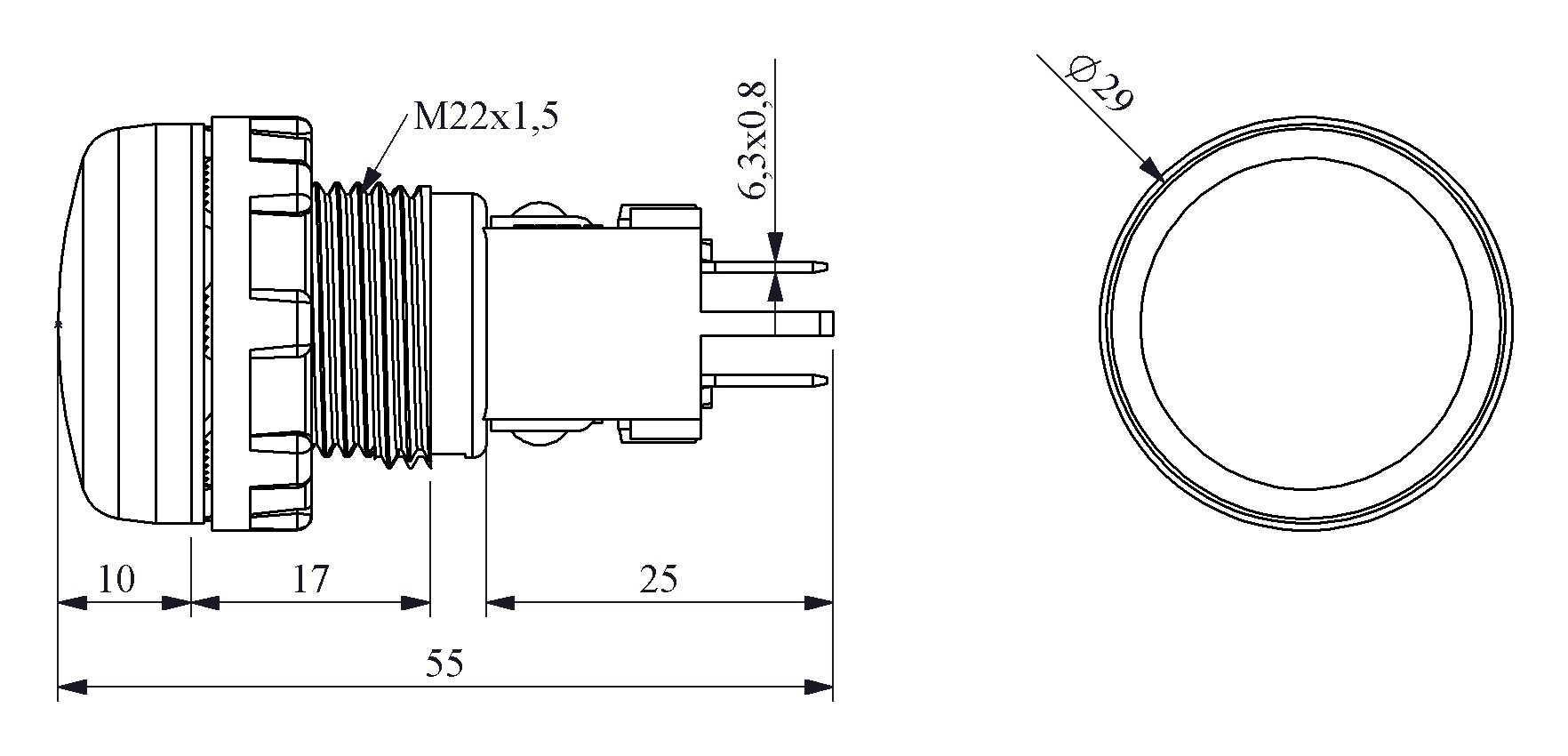 S Serisi Plastik Ba9S Duylu Sarı 22 mm Sinyal
