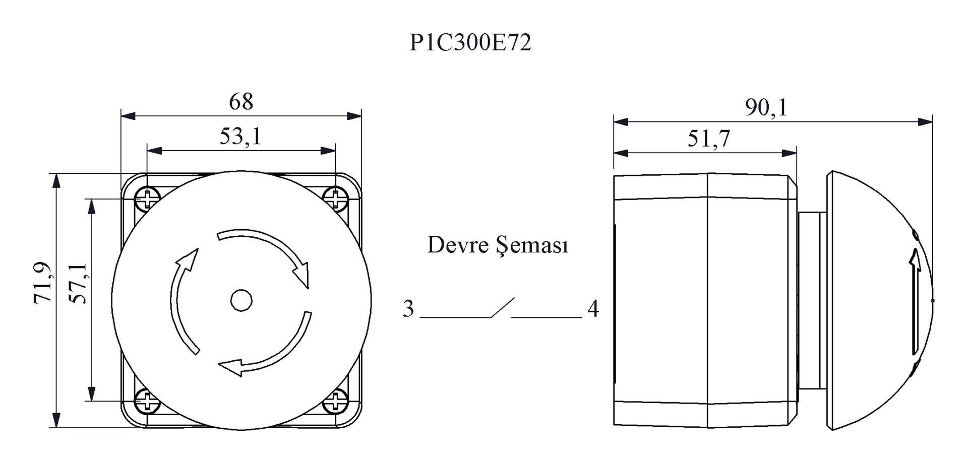 P Serisi Plastik 1 Gözlü CPDE72H+C3CK (NO) Gri-Siyah Kumanda Kutusu